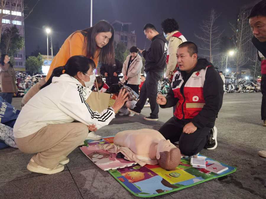 10月11日晚,二七万达广场2号门口人头攒动。一场别开生面的"急救夜校"活动在这里火热开课,吸引了周边商圈工作人员、社区居民等近百人参与。这是二七区新时代文明实践中心推出的特色惠民活动。