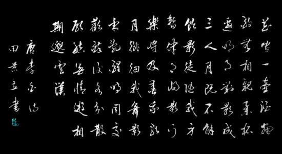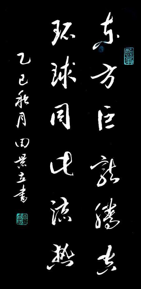 中国书法博大精深,以其独特的形式美、线条美、意境美,表达创作者的思想情感,把对美的认识、美的感受、美的追求,用笔墨的形式表现出来,从而创作出诗意美的书法作品。当代书法家田景立先生,以其文化修养丰厚,对艺术的美的境界与人格精神,充分表达出书法的精神和情感,作品中融情操、意趣、性格胸怀和自身的精神气度,审美理念。书风以古朴自然、气势豪迈、洒脱秀丽堪称当代书法典范。