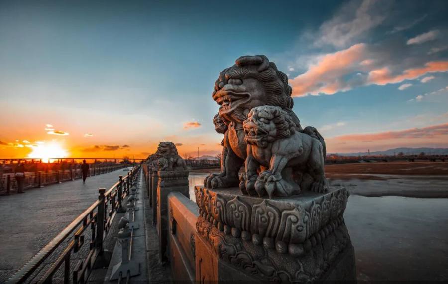 雄狮百态踞望柱,行人万里入都城。一桥连通南北,岁月岁岁峥嵘。