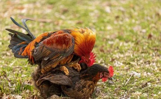 更过分的事情也发生了,有一天我端着鸡食去喂鸡,当我把鸡食倒进食槽后,公鸡像商量好了似的列队站在食槽周围不去吃食,而母鸡们像一群被宠坏的公主,扭着肥胖的大肚子自顾自的吃了起来。刚吃了一会,突然一只公鸡上前跳到了一只母鸡的后背上,不可思议的一幕出现了,它用嘴叨着母鸡头上的毛,母鸡竟然没有躲避,更没反抗,而是很享受的样子把尾巴向上一翘,公鸡像一个惯犯似的趁势把尾巴向下一勾,就这样它们完成了初次媾和。看来公鸡真是长大了,竟无师自通地把如此高难度的动作做得行云流水一般。