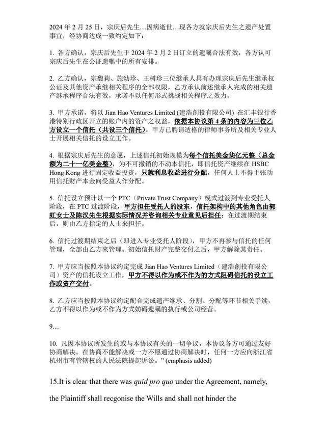 舆论质疑和诉讼压力下,宗馥莉不仅未采取任何安抚和谈判,反而试图通过上层监督施压,尽快确认回购协议效力,从而将关键股权纳入自身控制范围。