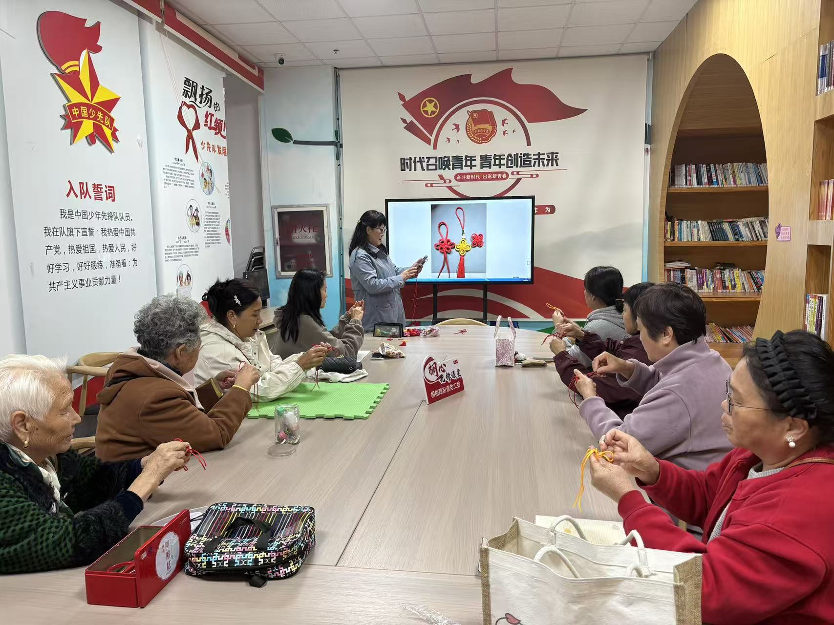 为丰富社区老年居民的精神文化生活,传承中华优秀传统手工艺,增进邻里情感。日前,市中原区桐柏路街道桐福社区开展了第四期老年系列活动——“巧手编织吉祥结”。社区网格员、志愿者、老年居民们都参与了此次活动。活动现场欢声笑语,其乐融融,居民们在一根根红绳的穿引绕抽间,不仅编织出精美的吉祥结,更编织出社区的和谐与温情。
