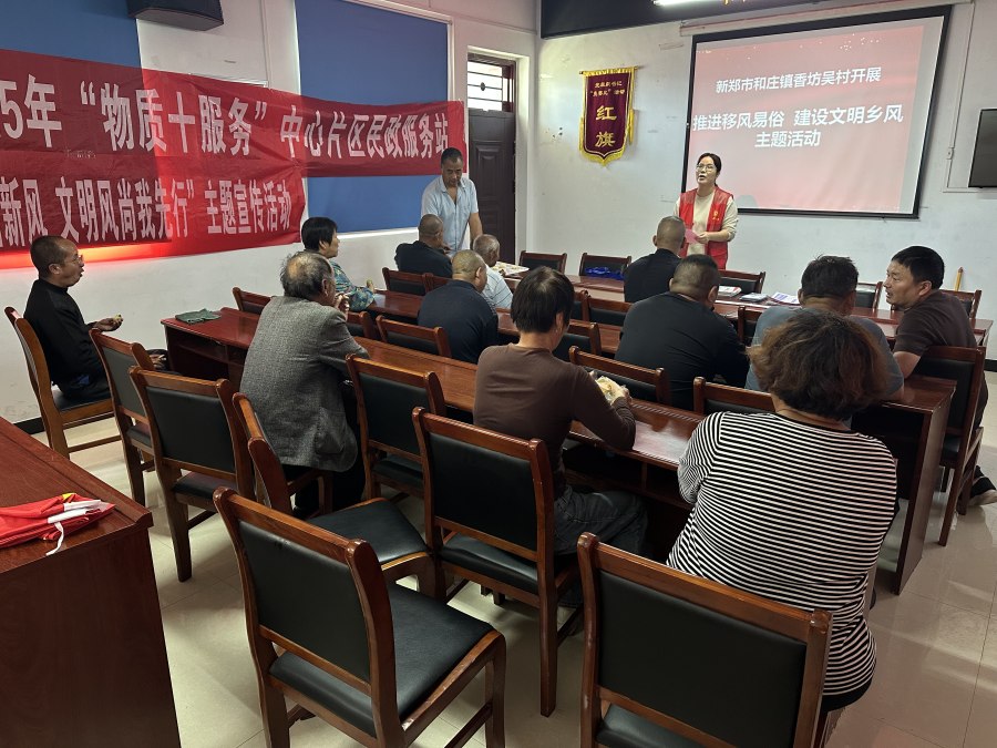 为深入培育和践行社会主义核心价值观,破除陈规陋习、弘扬时代新风,切实将移风易俗工作融入居民生活,2025年9月,新郑市民政局“物质+服务”项目中心城区民政服务站在新郑市民政局指导下以“移风易俗倡新风 文明风尚我先行”为主题联合新郑市和庄镇、中心城区、新华办等三个街道乡镇开展宣传活动,引导居民主动摒弃不良习俗,积极参与文明新风建设,为构建和谐、文明、宜居环境注入新活力。活动共计开展6次,吸引160余人次参加,通过活动宣传、入户宣传等多种形式推动文明风尚深入人心。