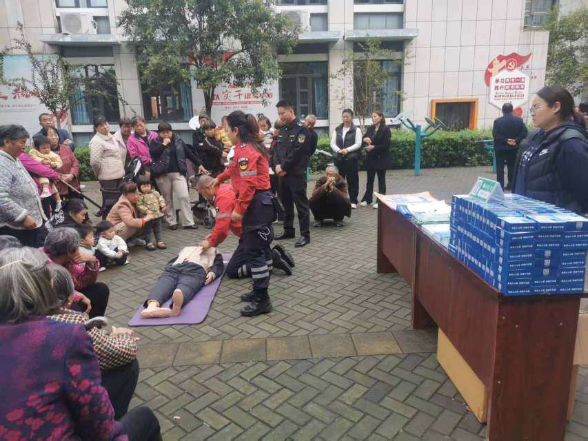 在社区活动现场,主题横幅醒目悬挂,知识展板直观呈现,宣传视频循环播放,浓厚的安全宣传氛围扑面而来。神鹰救援队聚焦地震、洪水、火灾等高频灾害场景,用居民听得懂的通俗语言,详细讲解“趴下、掩护、握固”避震法、洪水高处转移要点、火灾低姿逃生技巧等实用知识;更通过现场演示灭火器规范操作、心肺复苏基础步骤,将理论转化为可实操的技能,同时耐心解答居民关于家庭应急准备的各类疑问,让安全知识“活”起来。