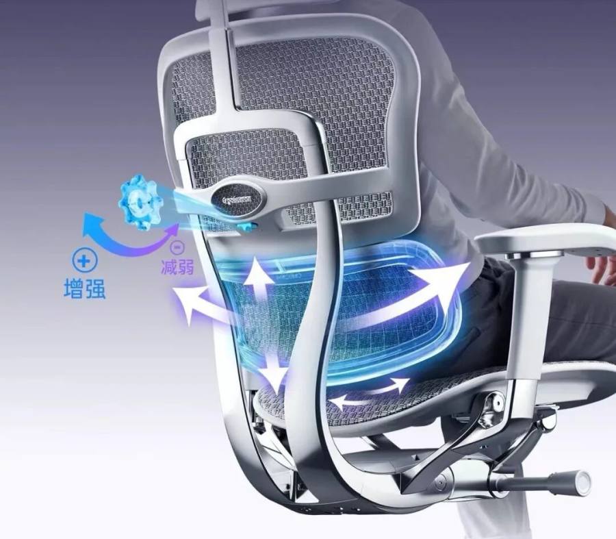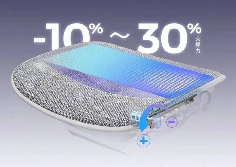 体重较大的用户可调高支撑,坐得更稳;体重较轻者则可调软一些,获得更贴合的包裹感。