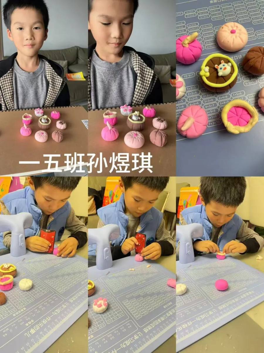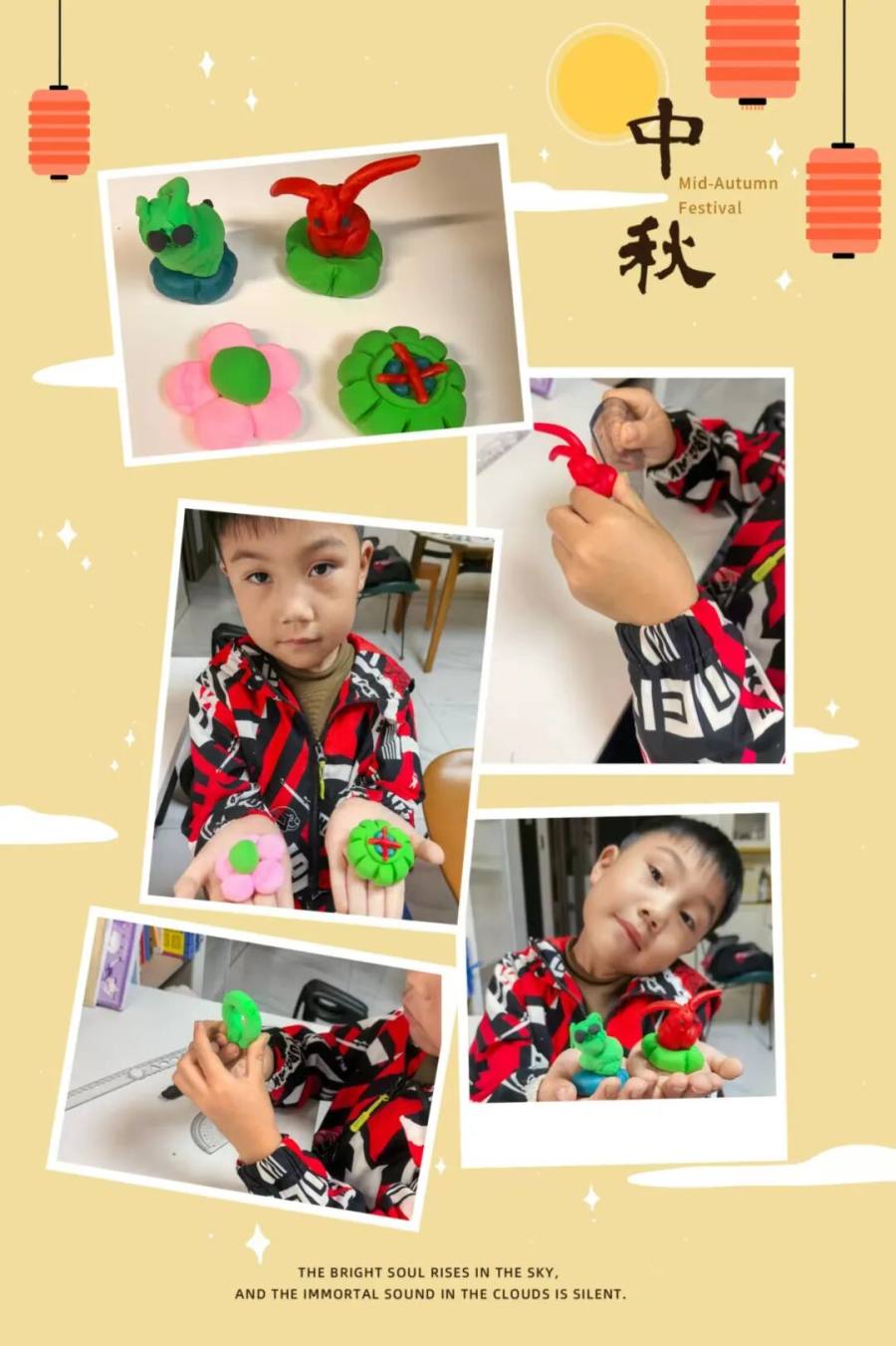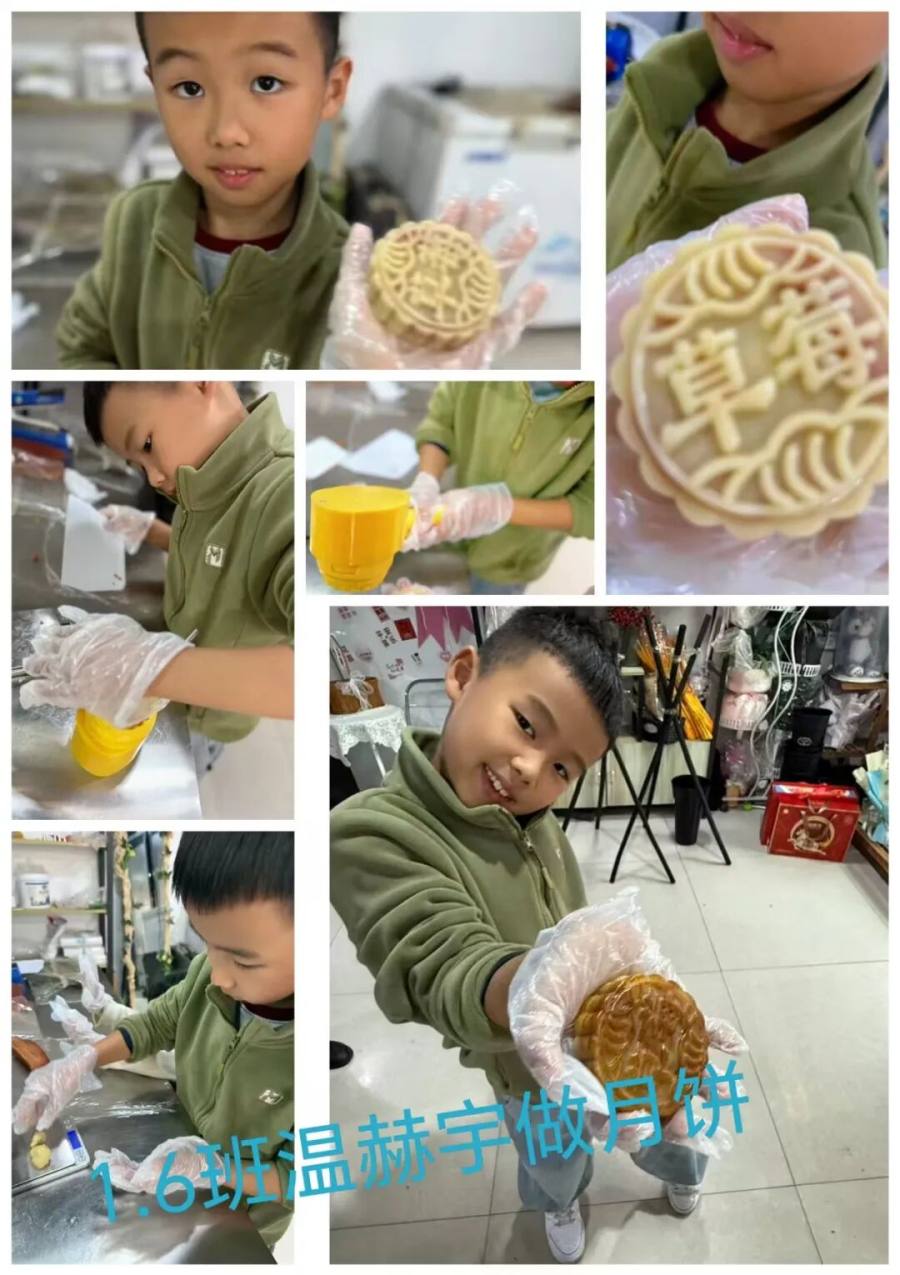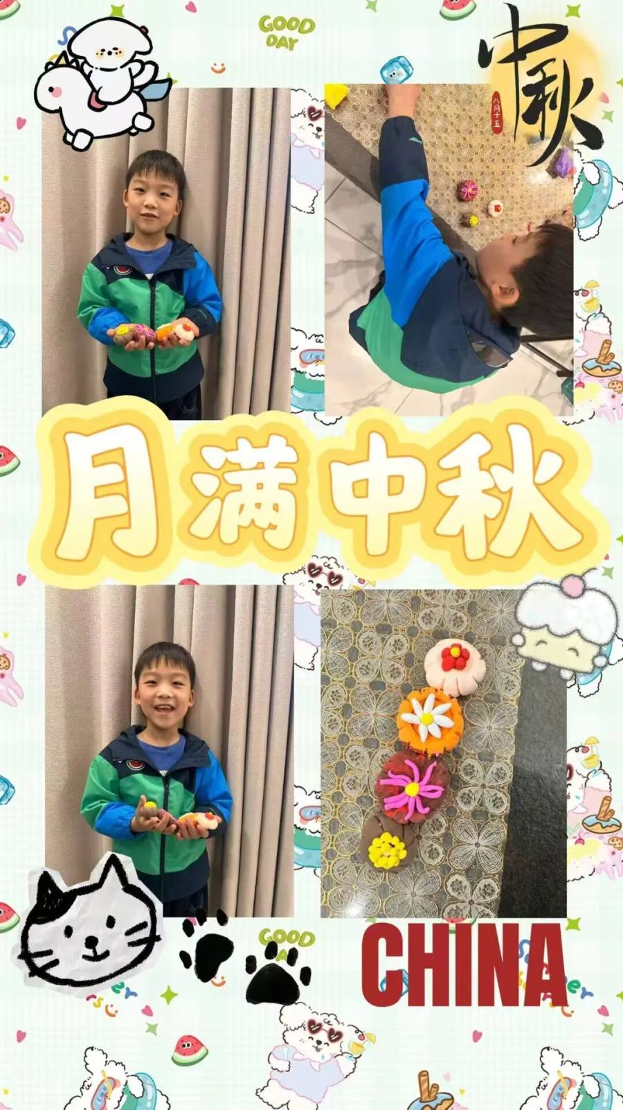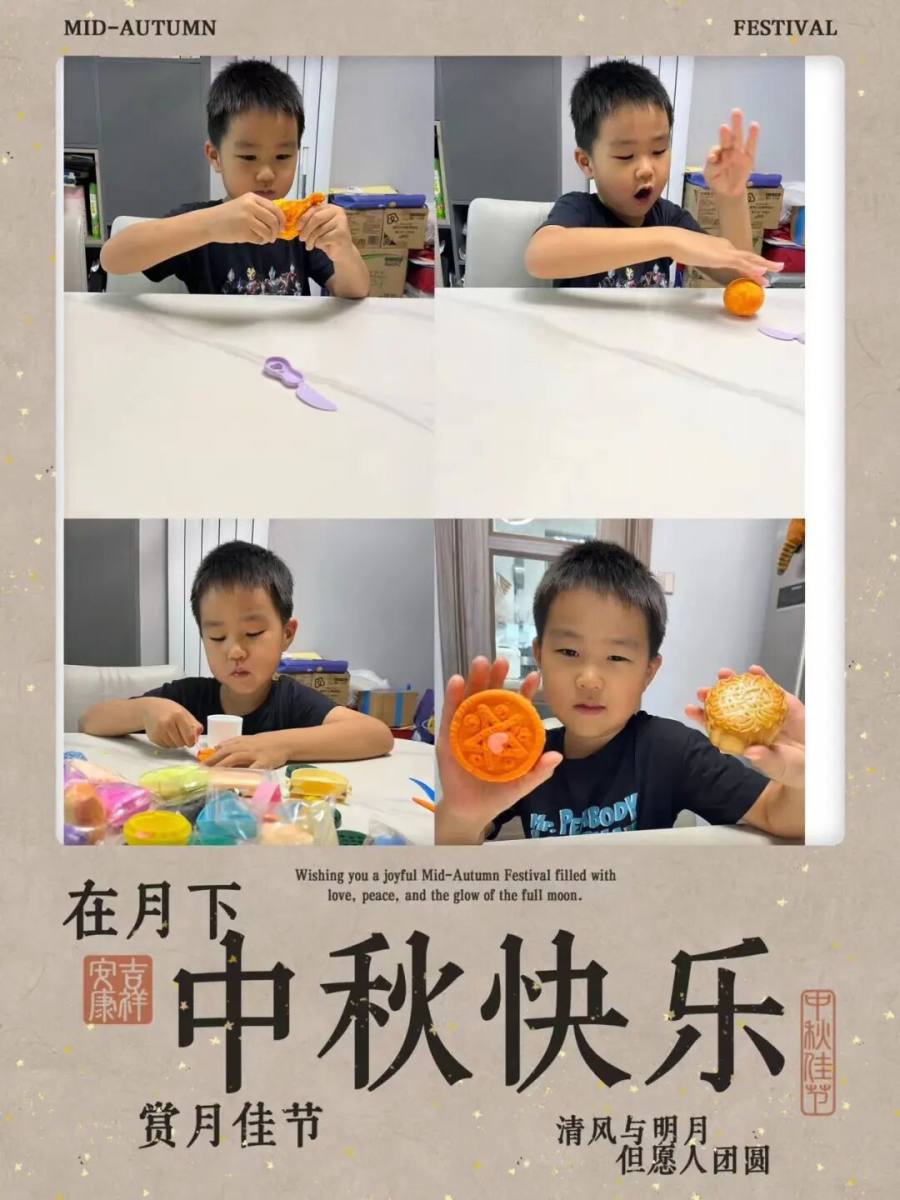 家长与孩子默契合作,开启了一场趣味十足的“月饼创作之旅”。有的用粘土捏出憨态可掬的卡通月饼,有的用冰皮和馅料制作出软糯香甜的真实月饼。揉、捏、压、包,每一个步骤都充满欢声笑语,孩子们不仅记录下制作过程,还与自己的“中秋作品”合影,定格这份动手的快乐与节日的甜蜜。