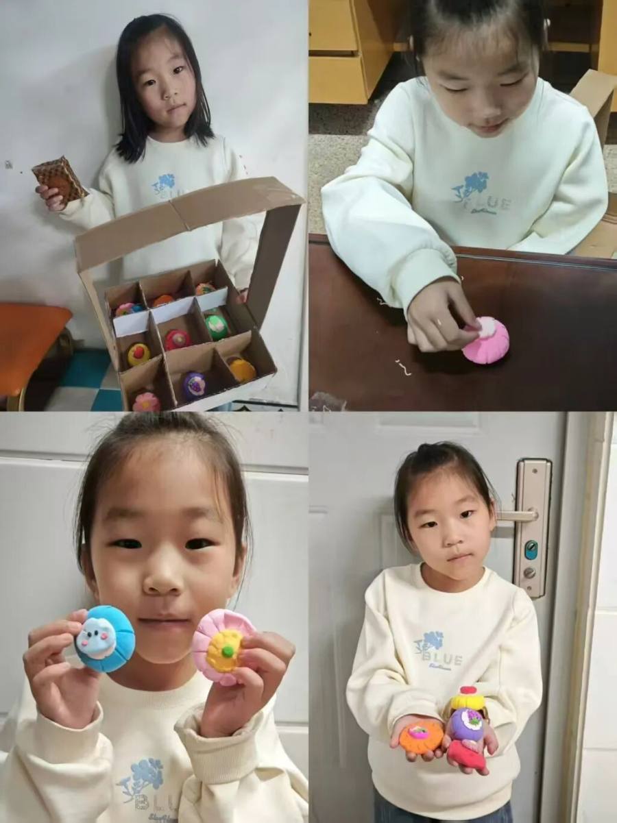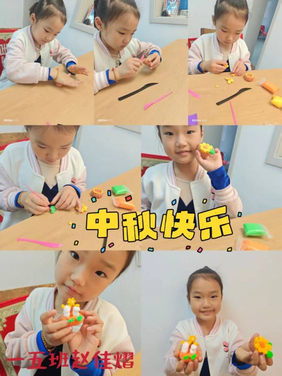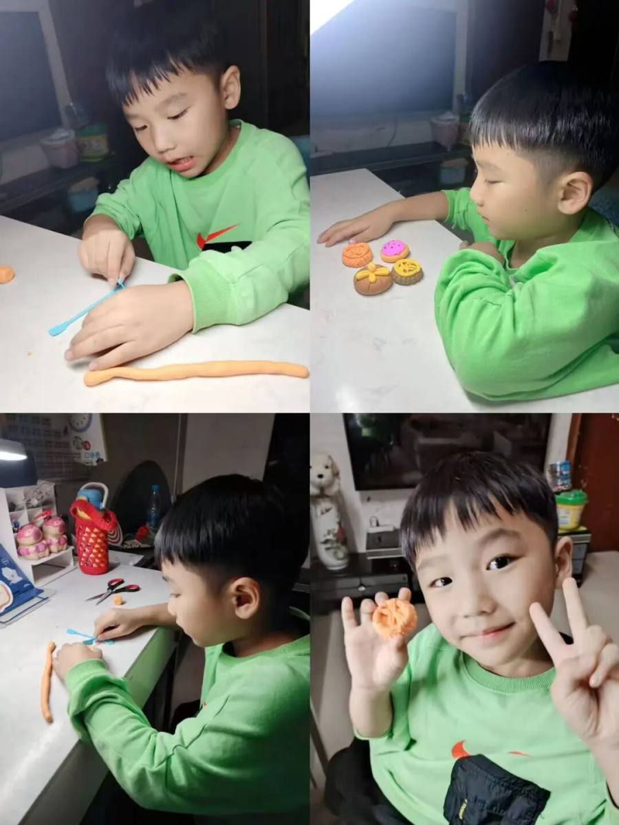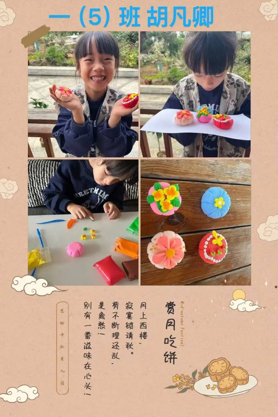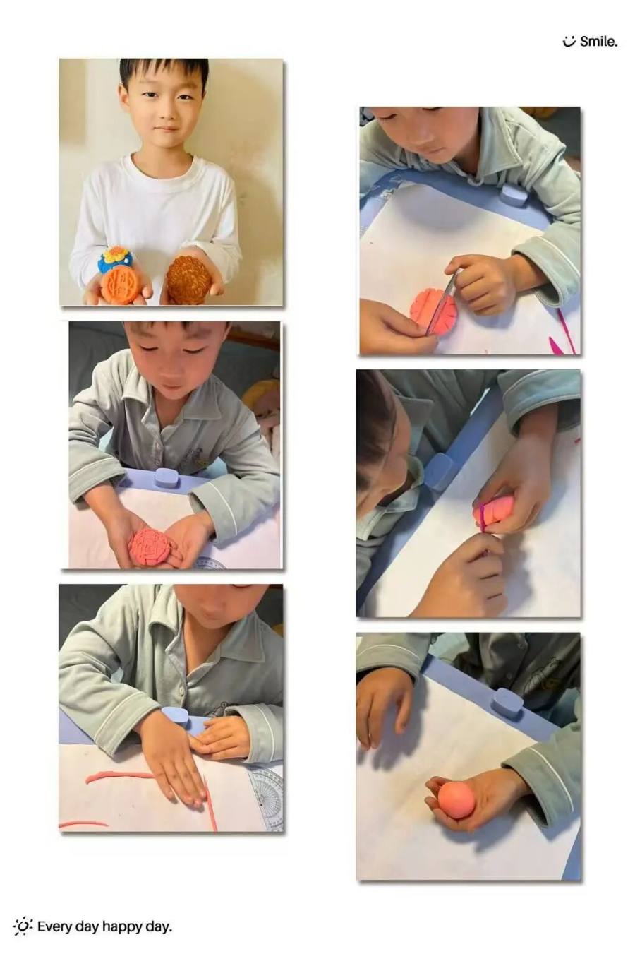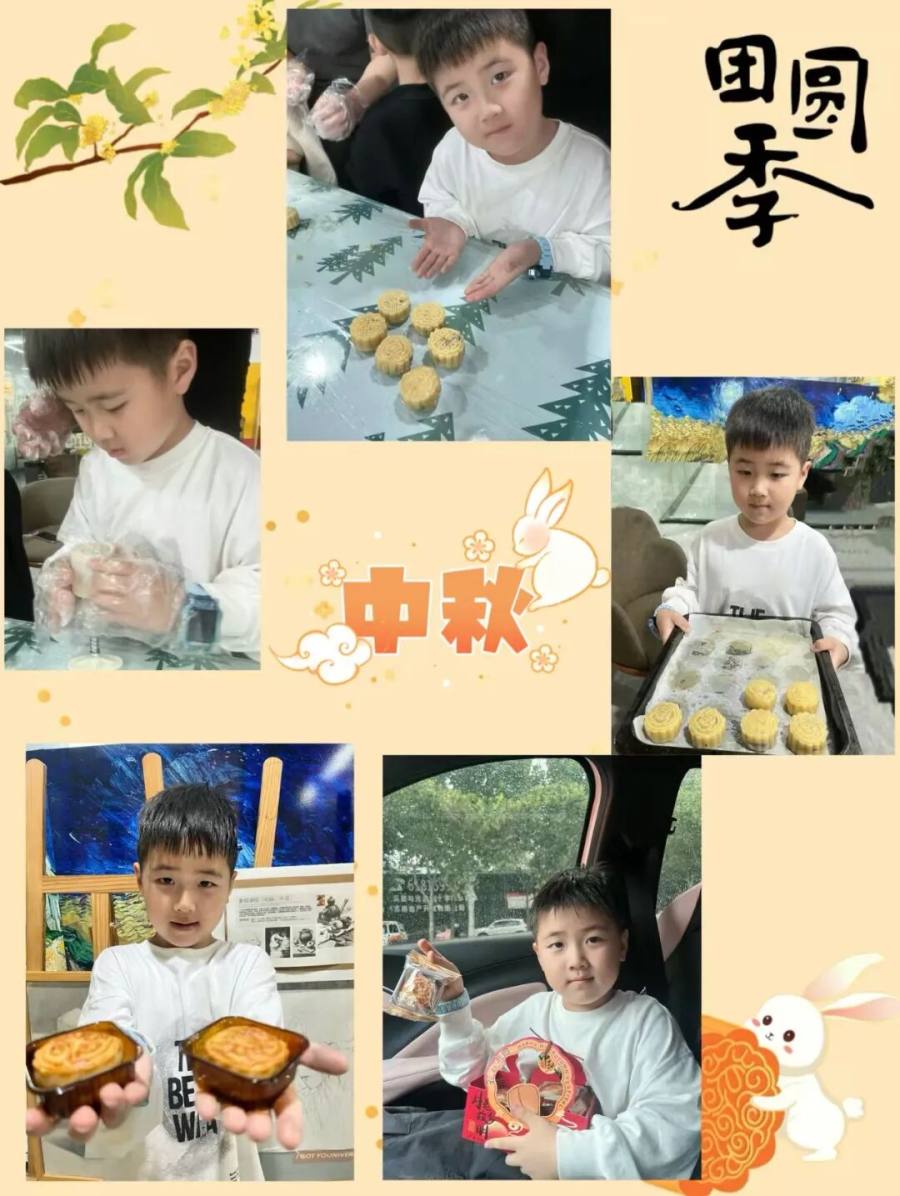 家长与孩子默契合作,开启了一场趣味十足的“月饼创作之旅”。有的用粘土捏出憨态可掬的卡通月饼,有的用冰皮和馅料制作出软糯香甜的真实月饼。揉、捏、压、包,每一个步骤都充满欢声笑语,孩子们不仅记录下制作过程,还与自己的“中秋作品”合影,定格这份动手的快乐与节日的甜蜜。