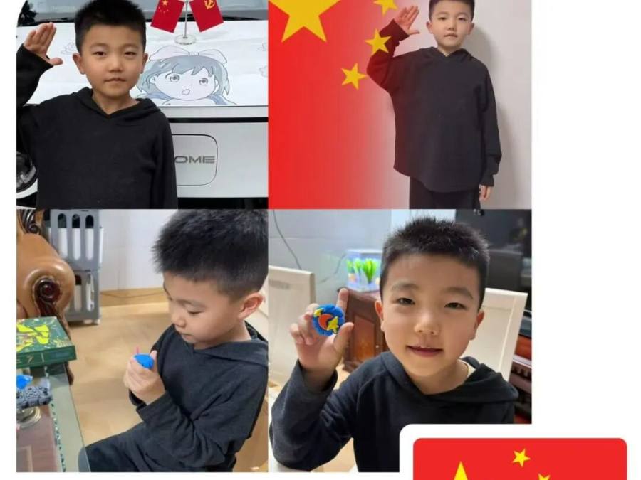 一面国旗,承载着家国信仰;一张合影,定格下赤子深情。恰逢祖国华诞,孩子们用最质朴的方式表达对祖国的热爱。无论是在洒满阳光的教室、书香满溢的校园角落,还是在充满生活气息的家庭场景中,同学们都可以扬起国旗,绽放笑容,用镜头记录对祖国母亲的祝福。每一张照片,都是青春与祖国的对话;每一个瞬间,都是少年与时代的共鸣。