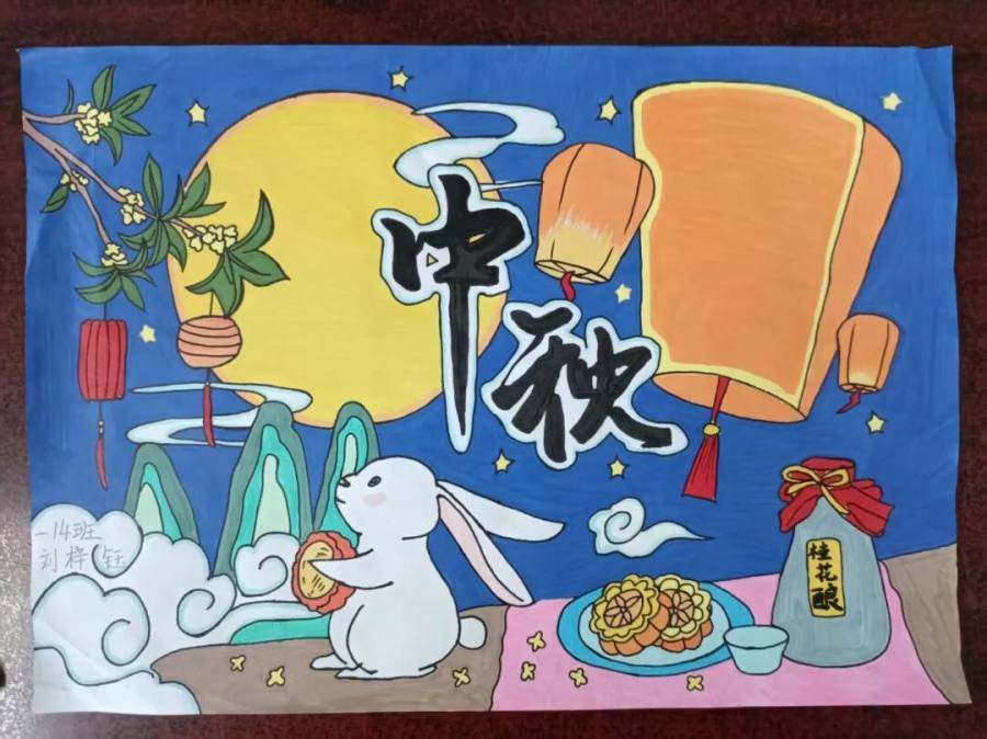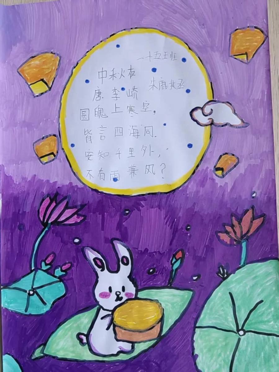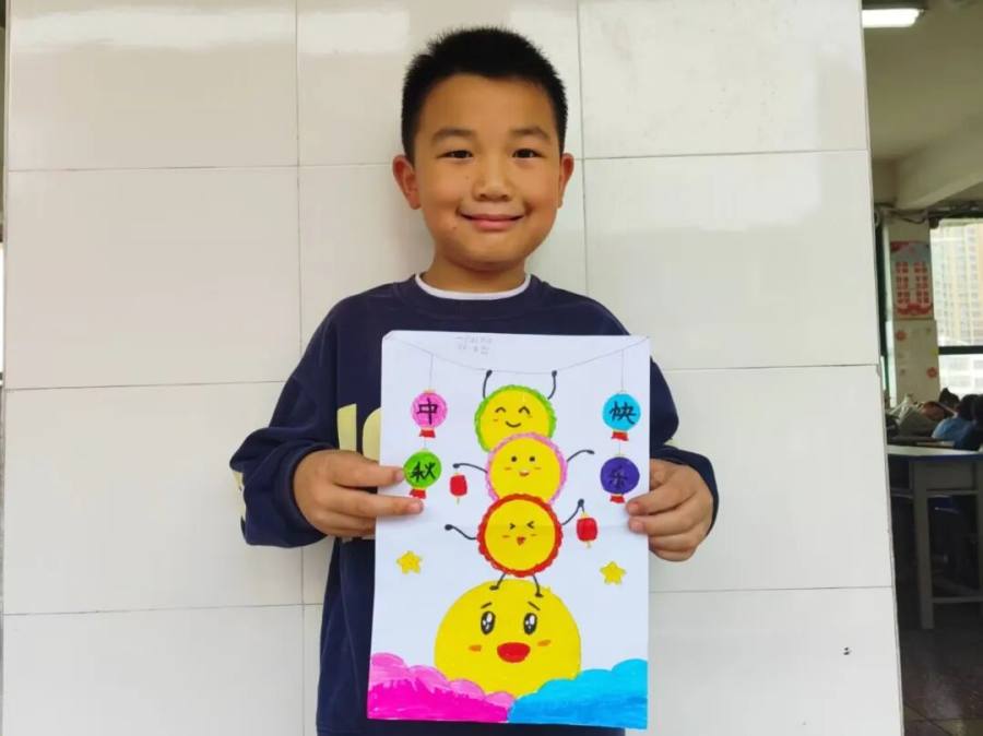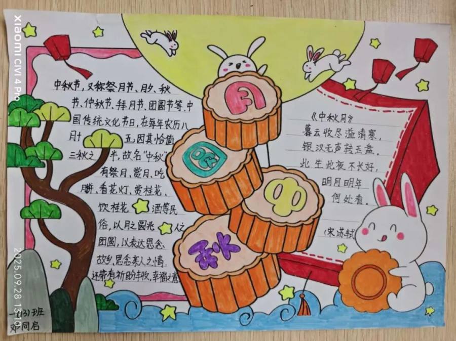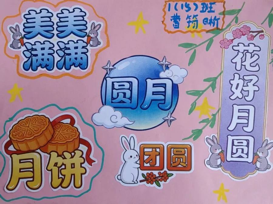 “我心中的中秋月,是挂在彩虹上的!”“我的中秋月里,有小兔子和桂花树!”在“勾勒中秋月”环节,孩子们拿起马克笔,在A4纸上尽情挥洒创意。色彩鲜明的画作里,藏着他们对中秋最纯真的想象;而在识字小报制作中,孩子们剪贴生活里与“中秋”相关的字词,既锻炼了动手能力,又加深了对节日的认知。