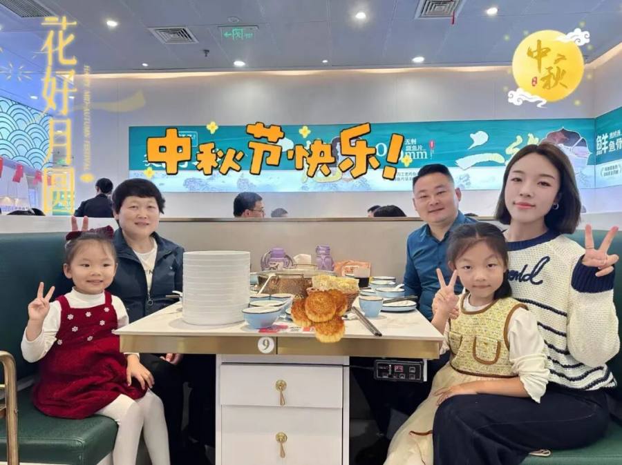 中秋的温暖,藏在一顿热气腾腾的团圆饭里。孩子们与家人围坐餐桌,共享美味佳肴,用相机拍下温馨合影,留住幸福瞬间。此外,他们还精心制作祝福书签,将对家人的爱意与中秋祝福写在上面,亲手送给家人,让这份节日的温暖在亲情间传递。