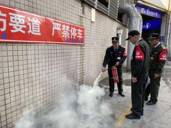 队员们迅速分工,一组携带灭火器、消防水带赶赴火源点,按照“提、拔、握、压”规范操作压制火势;另一组快速疏散周边群众,拉起安全警戒带,防止无关人员靠近引发危险。