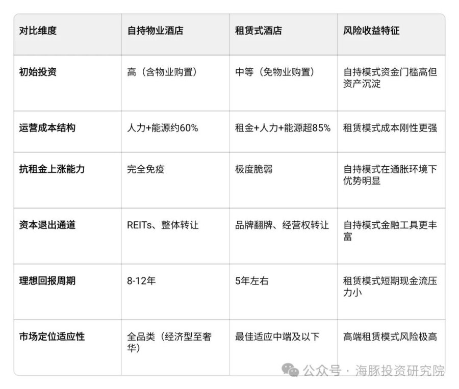 一位从事酒店投资的业内人士分析称,租赁型物业看似比自持物业挣钱,但租赁性投资成本越来越高,需要大量经验、资金、还要有好物业,入门门槛相较之前有所提高;自持物业则需通过产品分层、技术赋能和资产优化实现价值提升。