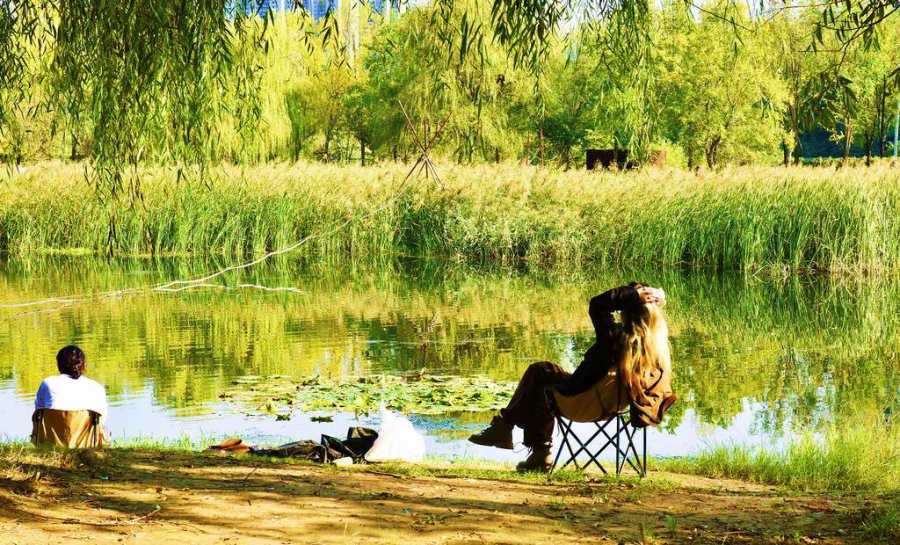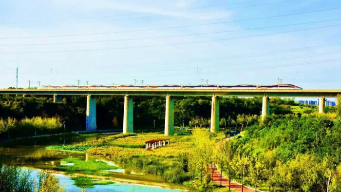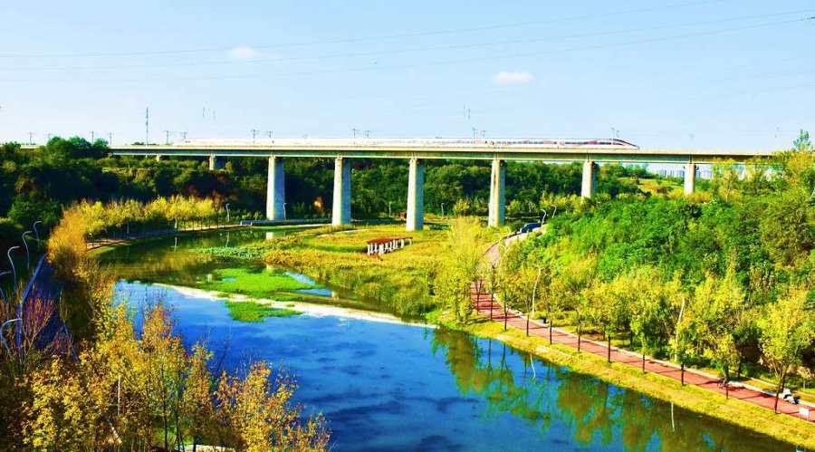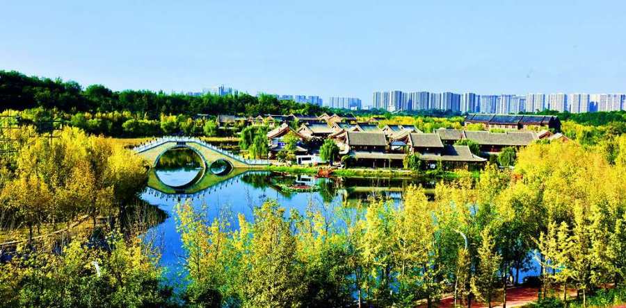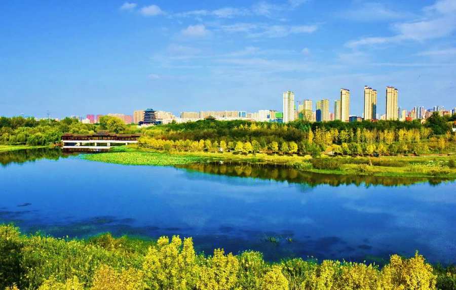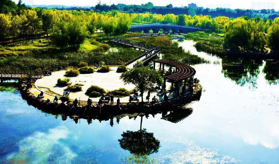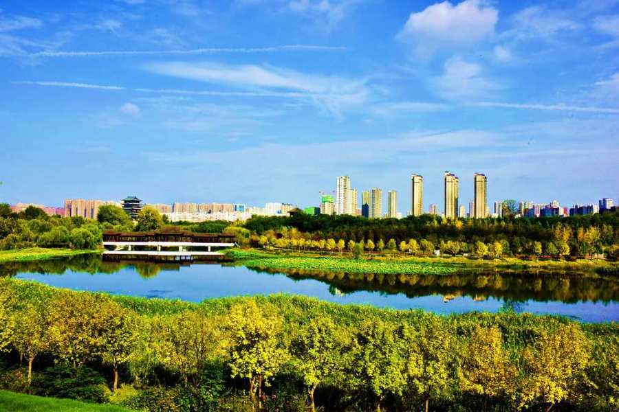 2025年10月13日,一场秋雨一场景,秋雨过后,站在西流湖公园山岗上放眼望去,蓝天白云下的西流湖公园层林尽染,美如打翻了的大自然调色盘,五彩斑斓,美如画卷。吴贤德摄影