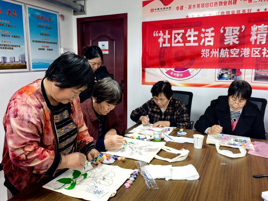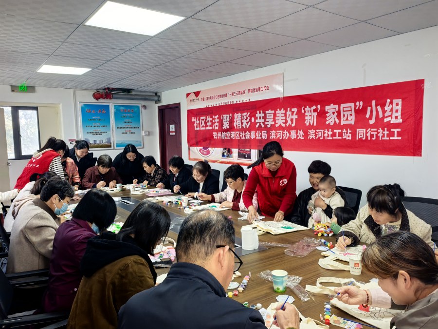 10月14日,滨河社工站在郑州航空港区社会事业局和滨河办事处的指导下,联合凌寒街社区在中建滨水苑小区开展“社区生活‘聚’精彩 共享美好‘新’家园小组第二节——彩绘帆布包DIY。