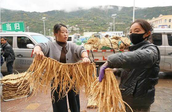 是秋收时节,他轻轻抖落黄芪根上的泥土,眼中闪烁着喜悦。
