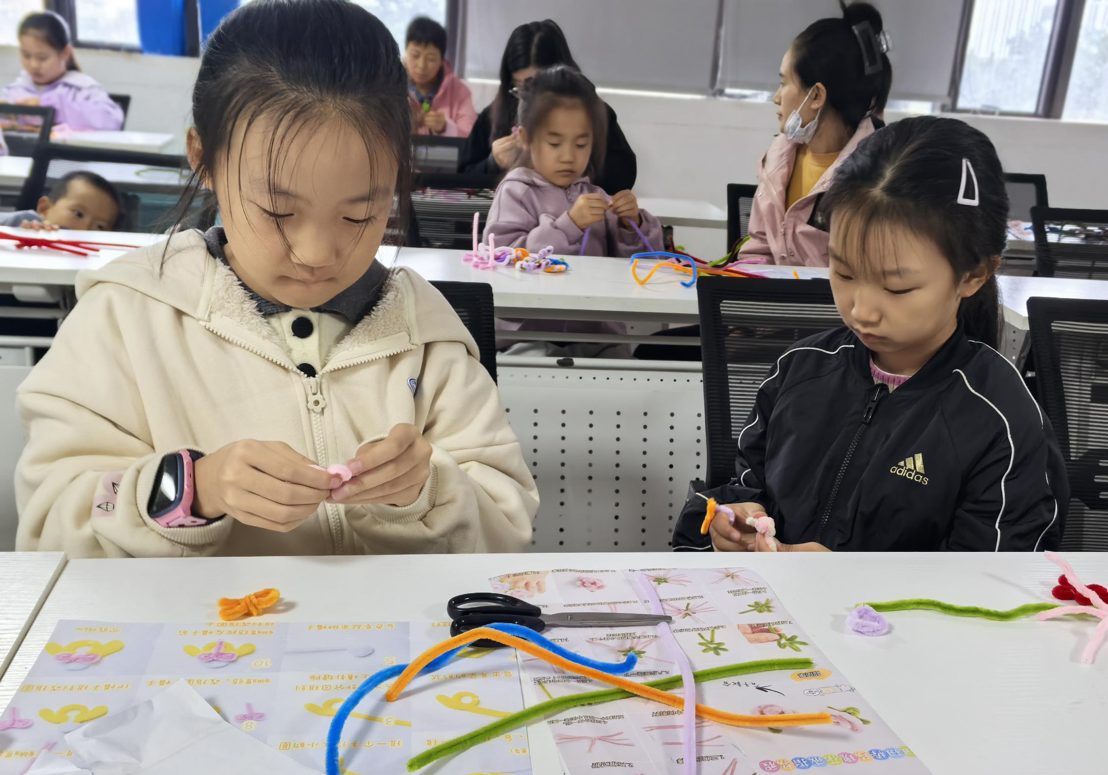 10月12日,郑州市惠济区新城街道金河社区新时代文明实践站联合万科物业,在云舒苑小区活动室成功举办主题为 “百变扭扭棒 巧手生妙花” 的亲子手工体验活动,吸引了近30组家庭踊跃参与。