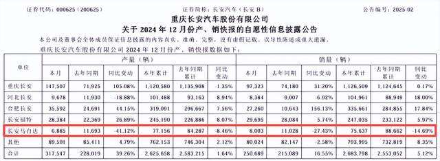 但结合长安汽车产销报告可知,马自达2024年共计售出7.56万台,实际销量同比下滑14.69%,国内市场份额也减少0.15个百分点至0.3%,成为汽车行业此消彼长的激烈竞争态势中“消”的那一方,主流市场边缘化趋势进一步加剧。