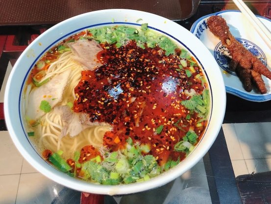 马有才牛肉面的故事(财源大厦店)的招牌牛肉面,汤头用牛骨熬得清亮香浓,拉面能选九种粗细,二细最受欢迎,筋道爽滑,牛肉给得实在,蘸上辣油,一碗下肚特舒坦。