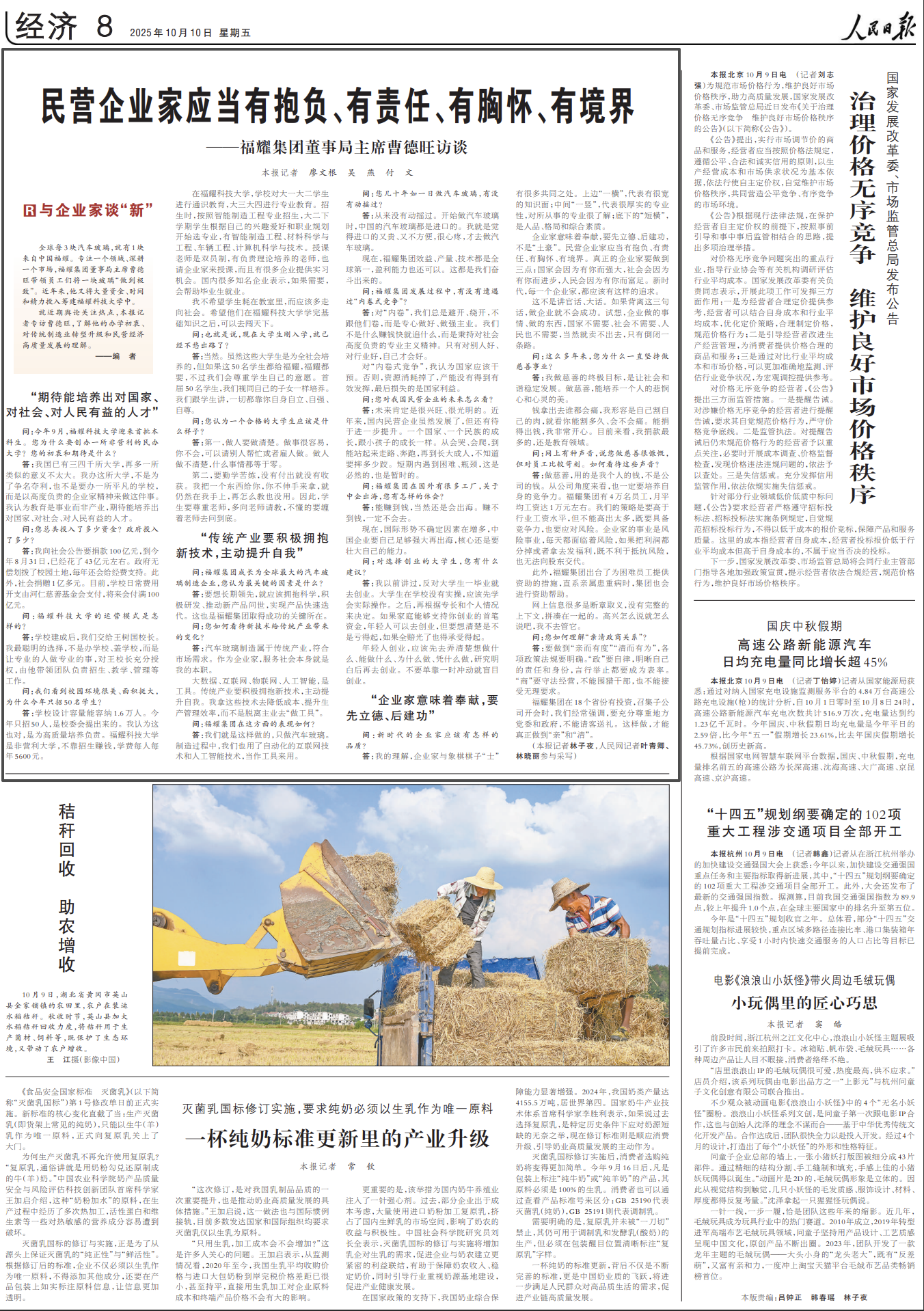 10月10日,曹德旺接受《人民日报》专访的文章刊登在第八版头条,篇幅几乎占了近一半的版面。
