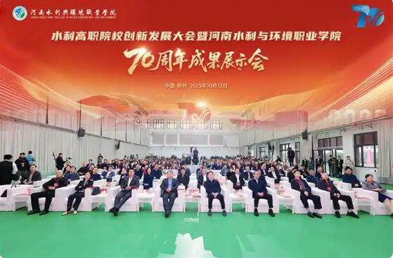 七秩芳华,水利千秋。10月12日,河南水利与环境职业学院校园内高朋满座、胜友如云,水利高职院校创新发展大会暨办学70周年成果展示会在此隆重举行。河南省教育厅党组成员、省委教育工委专职副书记刘林亚,河南省水利厅党组成员、副厅长、一级巡视员刘玉柏,河南省水利厅副厅长祝云宪等各级领导、兄弟院校代表、行业企业嘉宾、各界校友及在校师生齐聚一堂,共庆学校七十华诞,共谋水利职业教育创新发展大计。