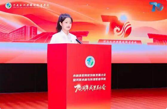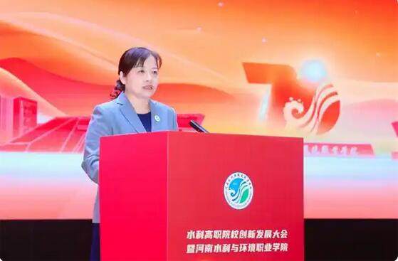 随后,河南水利与环境职业学院校长李志萍发表了题为《深耕水利职教七十载 谱写创新发展新篇章》的工作报告。她系统梳理了学校从“因水而建”的初创期、“依水而兴”的发展期到“循水而进”的跨越期的奋进历程。从百业待兴的1955年到全面振兴的2025年,河南水环学院三迁校址、八易校名,在水利事业和职业教育事业由小变大、由弱变强的历史进程中,走过了初心如磐、薪火相传、求实奋进的70年。