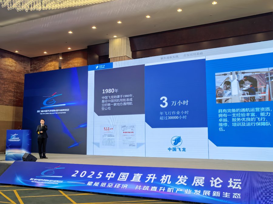 作为我国通航产业的标杆企业,郑州通航示范区企业代表——中国飞龙通用航空有限公司(以下简称“中国飞龙”)受邀出席盛会。同时,总经理龚全围绕“聚焦通航实践,彰显民机实力——助力直升机产业新生态构建”作主旨演讲。她结合中国飞龙在通航运营一线的多年实践经验,系统介绍了企业在通航运营、专业培训、航空器维修与改装等领域的成果,重点分享了中国飞龙作为国产民用飞机的先锋用户,在多类应用场景中的积极探索与深度实践。演讲内容务实具体,不仅展现了中国飞龙持续推动国产飞机在低空市场应用的责任担当,也体现了郑州通航示范区为企业发展提供的坚实支撑与优质产业服务,为论坛主题提供了来自一线运营实践的扎实支撑,引发了与会专家的广泛共鸣与高度认可。