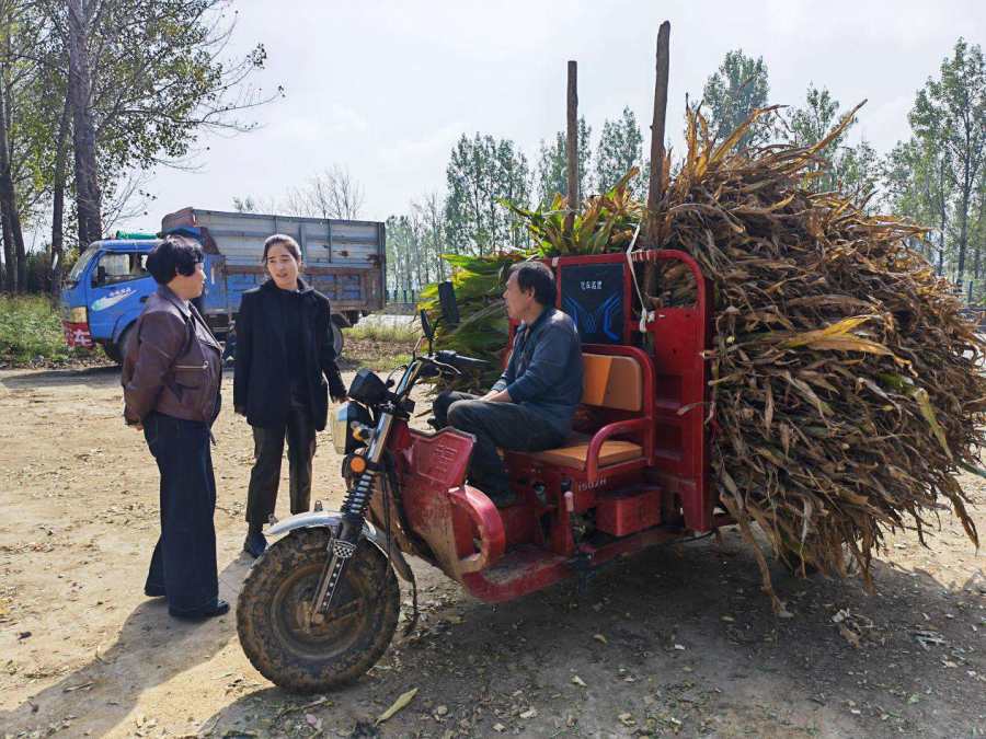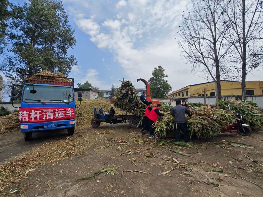 10月14日,在登封市石道乡陈村小学旧校舍门口,饲料粉碎机正开足马力轰隆隆运转,将村民从田间回收运来的玉米秸秆进行集中粉碎加工。这些经过处理的秸秆将被送往牛羊养殖场,成为青贮饲料,用于牲畜饲养。曾经令人犯难的“生态包袱”,如今正逐步转变成备受青睐的“绿色财富”。