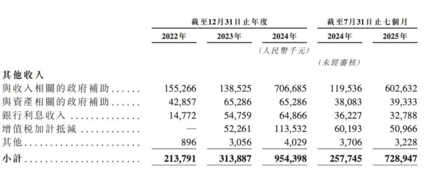 招股书显示,2025年1-7月,岚图汽车“与收入相关的政府补助”从去年同期的1.20亿元大幅提高至6.03亿元,增幅高达404.13%。