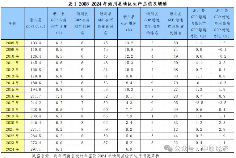 从GDP总量来看,2024年淅川县GDP为297.1亿元。2023年淅川县GDP为273.4亿元,在南阳市下辖11个县(市)中排名第8位,在河南省下辖102个县(市)中排名第57位。