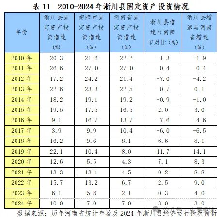从固定资产投资增速来看,自2018年来,淅川县固定资产投资增速均高于南阳市和河南省固定资产投资增速。2023年淅川县固定资产投资增长10.0%,高于南阳市3.0个百分点,高于河南省3.0个百分点。