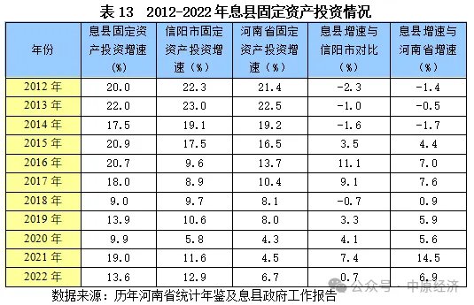 从固定资产投资增速来看,2022年息县固定资产投资增长13.6%,高于信阳市0.7个百分点,高于河南省6.9个百分点。