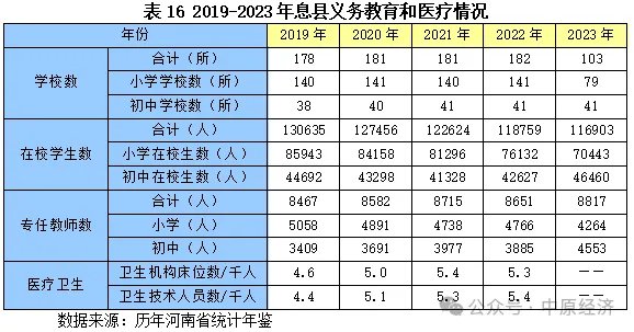 从教育情况来看,2023年息县有小学79所,在校生70443人,专任教师4264人,生师比16.5:1。初中41所,在校生46460人,专任教师4553人,生师比10.2:1。