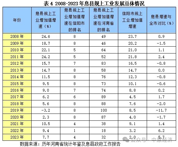 从增速来看,2023年息县规上工业增加值增速为7.7%,高于信阳市5.7个百分点,高于河南省2.7个百分点,在信阳市下辖8个县(市)中排名第4位,在河南省下辖102个县(市)中排名第32位。