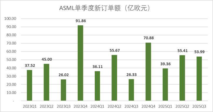 三季度ASML的新订单额达到了54亿欧元,高于市场预期49.7亿欧。