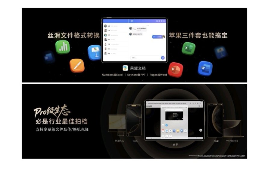作为首款MagicOS 10平板,荣耀MagicPad3 Pro凭借PC级系统,通过生态互联、荣耀AI文档、荣耀AI会议以及YOYO助理,打造AI体验天花板。荣耀MagicPad3 Pro是生态开放的行业最佳拍档,支持跨iOS、安卓、鸿蒙、Windows、Mac等系统的文件互传,一键格式转换Numbers、Keynote、Pages等苹果三件套,还支持为iPhone提供至高23W反向充电,登机不带充电宝也无需担心。
