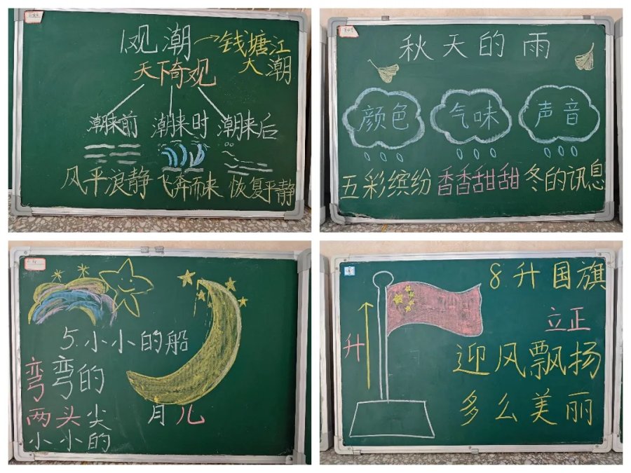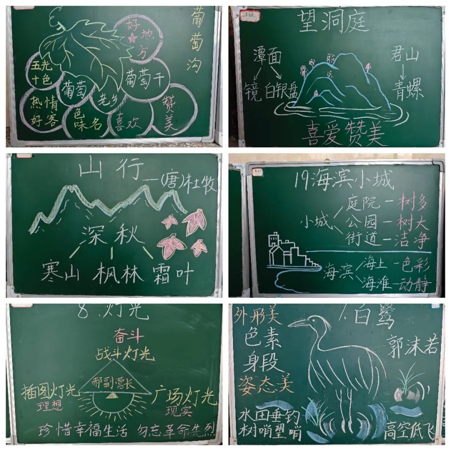 语文学科教师们以教材经典篇目为墨,以黑板为纸,将汉字书写之美与语文教学之韵巧妙融合,留下一幅幅兼具实用性与艺术性的板书佳作,尽显语文学科独特魅力。
