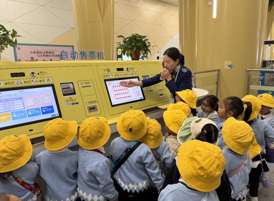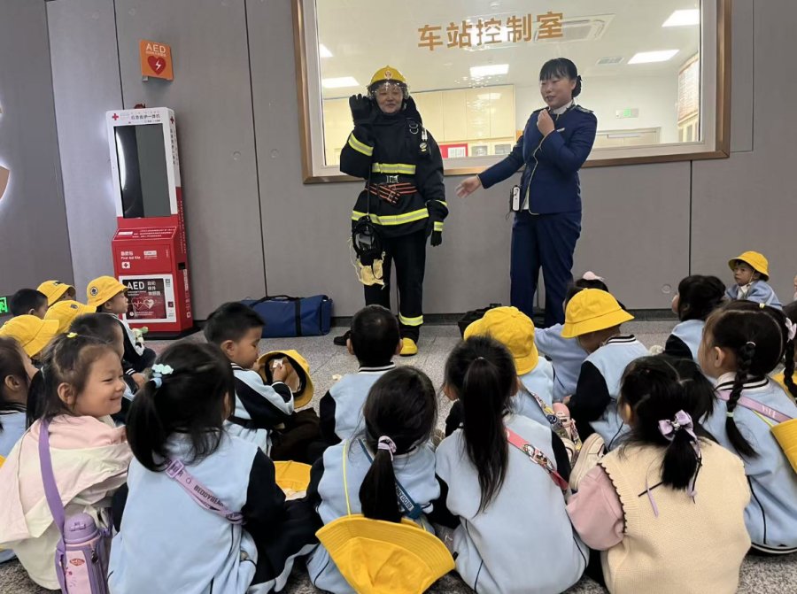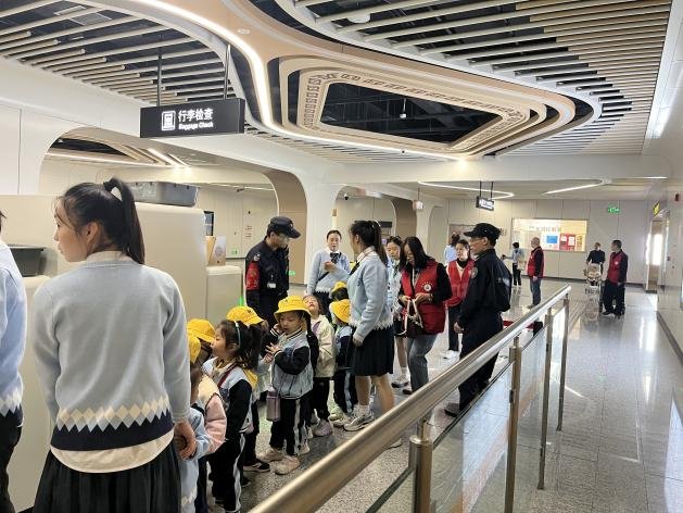 活动的核心环节是深度参观白庙站。在地铁专业讲解员的带领下,孩子们以班级为单位,分路线、分批次地探访了车站的“核心区域”——神秘的车站控制室、严谨的安检处、智能的闸机口、繁忙的站台以及贴心的客服中心。孩子们睁大了好奇的双眼,近距离观察了地铁运行的“大脑”和“关节”,对工作人员各司其职、保障地铁安全高效运营的辛勤付出有了直观的认识。