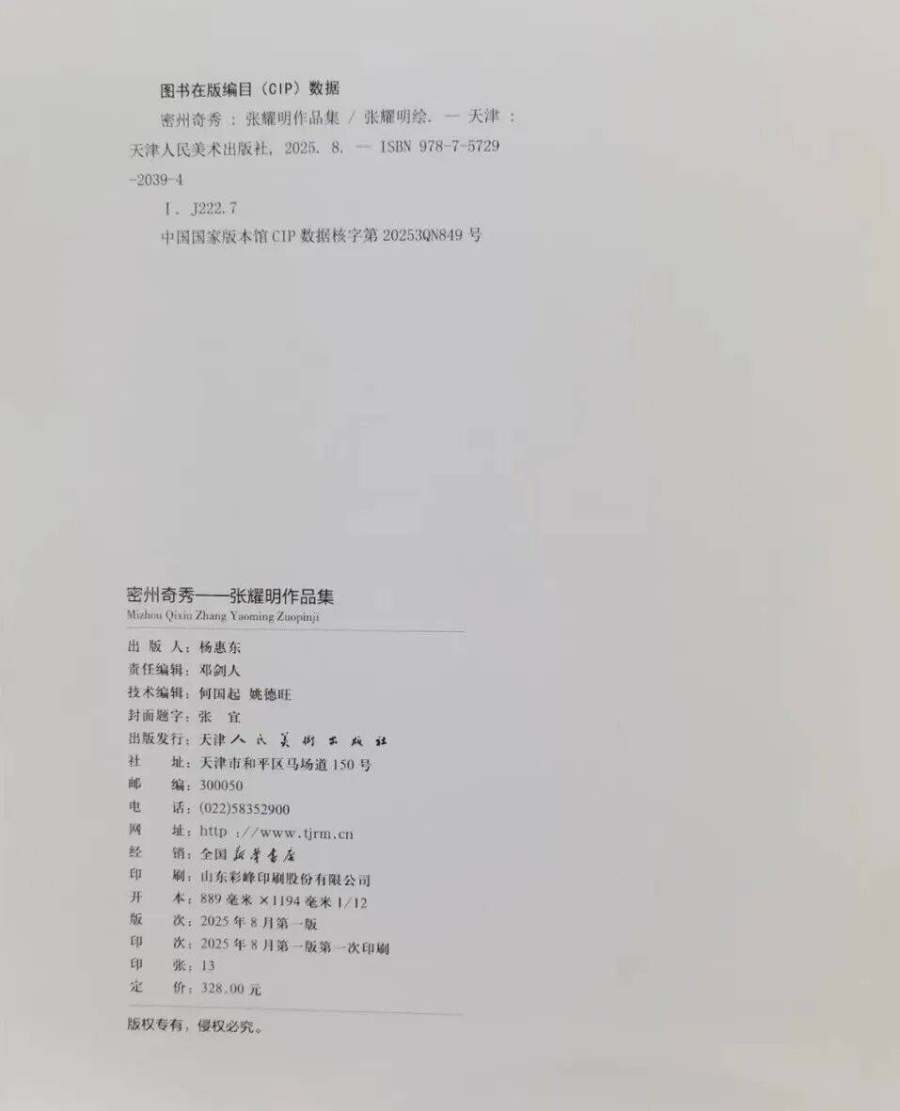 密州奇秀·张耀明作品集,大12开本,13印张,硬封精装版。封面由山东美协常务副主席张宜题字。2025年8月第一版第一次印刷。由天津人民美术出版社出版发行,全国新华书店经销。