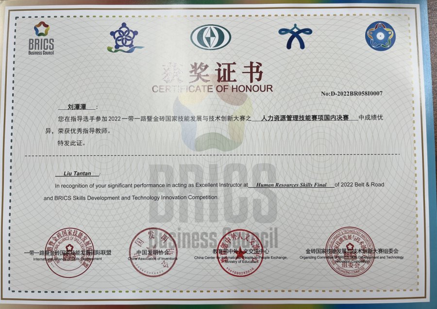 为备战“踏瑞杯”高职高专人力资源管理技能大赛全国总决赛,他牵头组建团队,制定“早晚集训+周末强化”的训练计划。每天清晨,直至深夜的教学楼里,总能看到他为学生讲解竞赛难点的身影。经过6个月的刻苦训练,最终,常婷所在的团队一举夺得国家级竞赛一等奖,站上领奖台时她哽咽道:“没有刘老师的坚持,就没有我们的今天的荣誉。”