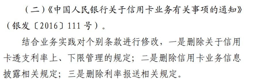 今年8月底,央行就《修改〈电子支付指引(第一号)〉等4件规范性文件》向社会公开征求意见,核心内容包括拟取消信用卡透支利率的上限和下限管理。