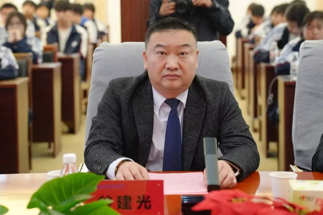 谷建光在致辞中向嘉宾的到来表示热烈欢迎,向长期以来为教育事业做出贡献的濮阳县第二实验中学全体同仁致以崇高的敬意。谷建光介绍了学校发展概况、人才培养、办学成果等,他表示,濮阳县第二实验中学作为区域基础教育的标杆,始终坚守立德树人根本任务,有着“勤学善思、笃行务实”的优良品质,双方办学宗旨高度契合,为跨越学段、携手合作提供坚实根基。并围绕教育资源共享、人才培养贯通、成长平台共筑三个方面提出合作期待,希望为两校发展注入新活力,更能为中原地区教育高质量发展、为国家培养“大国工匠”贡献力量。