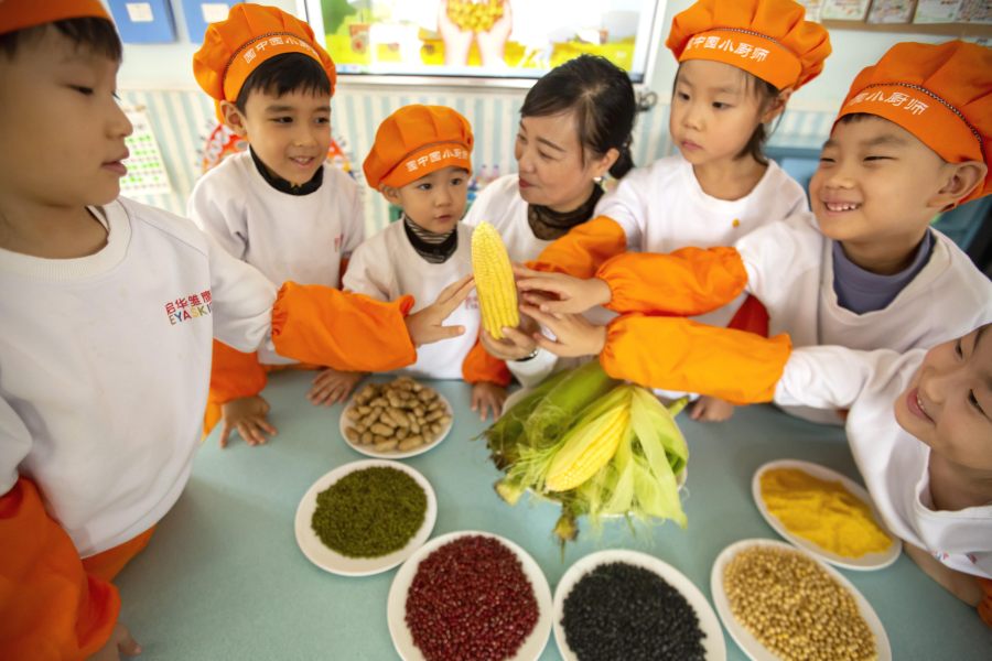 在第45个世界粮食日到来前夕,华秀社区与园中园幼儿园联合开展了“爱惜粮食 从小做起”活动。 幼儿园厨房阿姨把孩子们每天吃饭使用的玉米、大豆、绿豆、黑豆、红小豆等食材摆到课桌上,让孩子们零距离触摸粮食的“温度”,从而感悟了 “谁知盘中餐,粒粒皆辛苦”的含义,深刻体会到了每一粒粮食背后的艰辛与不易。让“爱惜粮食,从小做起”的理念在欢声笑语中悄然生根发芽。