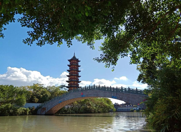 谢灵运公园的精妙,在于它将文化记忆编织进园林肌理。从入口处的谢灵运雕像启程,经谢公桥望向白象塔,视线所及的每一处景观都暗藏呼应。这种"以传统园林手法展现诗人生平"的设计,让公园摆脱了普通城市绿地的平庸。