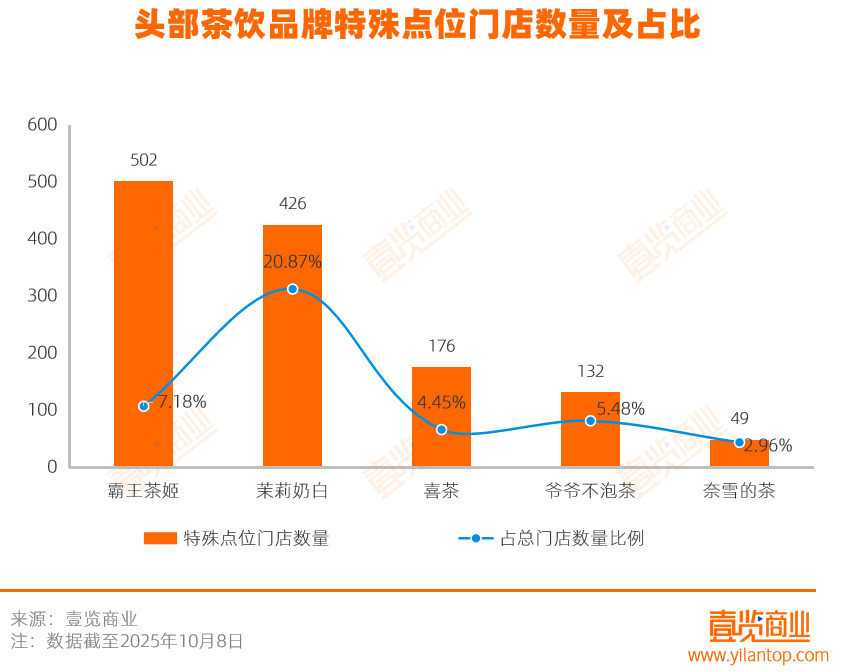 而截至10月8日,爷爷不泡茶已布局132家特殊点位门店,占其全国门店总数的5.48%。这一比例在同类品牌中处于中游水平,与霸王茶姬的7.18%接近。