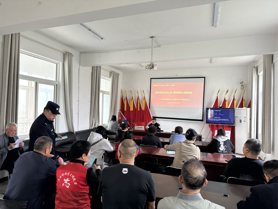 为提升居民反诈意识、守住“钱袋子”,10月15日下午,大石桥街道金沙社区联合辖区派出所民警开展反诈宣传活动,通过案例讲解+互动答疑”形式,筑牢社区安全防线。