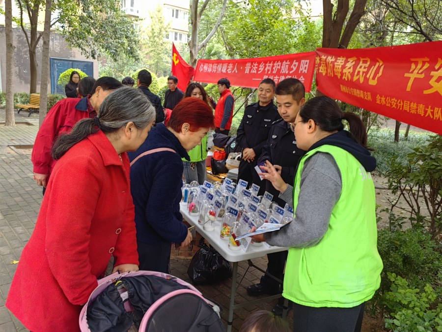 为进一步筑牢社区禁毒安全防线,提升居民法制与健康意识,夯实平安和谐社区建设基础,10月16日,在郑州市公安局禁毒支队、金水分局禁毒大队的指导下,北林路街道办事处联合德裕行禁毒社工、郑州市白庙强制隔离戒毒所、御金城社区、辖区便民团队、万嘉物业在万龙花园小区广场共同开展“防毒于未,便民于微”志愿服务活动,将禁毒知识与便民服务送到居民“家门口”。
