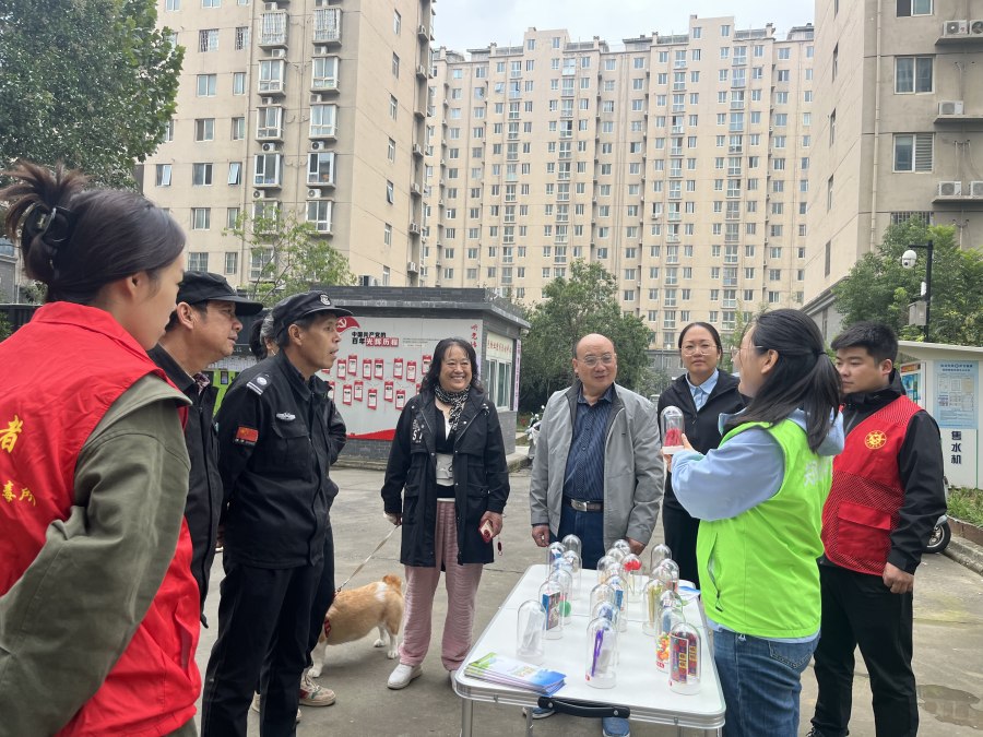 为进一步筑牢社区禁毒防线,提升居民识毒、防毒、拒毒意识,10月16日,在郑州市公安局禁毒支队,经开分局禁毒大队的指导下,明湖街道办事处联合同行禁毒社工、市白庙强制隔离戒毒所民警,在亚太明珠社区开展了一场“零距离”禁毒宣传活动,将禁毒知识送到居民家门口。