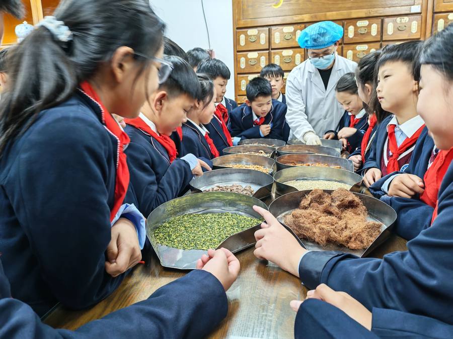 随后,队员们有序参观了中药标本馆。馆内陈列的丰富药材标本,系统展示了本地特色药材的形态与特性,辅以生动的讲解,帮助孩子们建立起对中药原材料的基本认知。