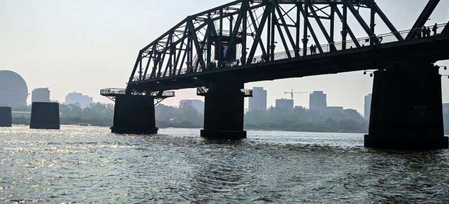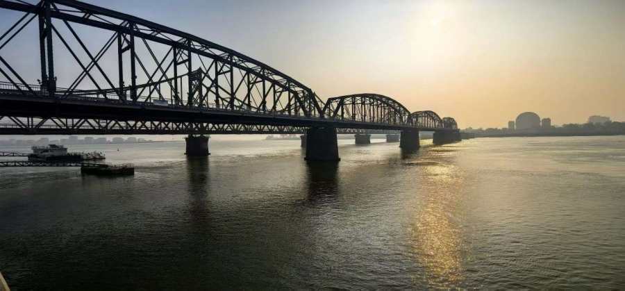 铁骨桥横,惊回首、烽烟如昨。涛声里、断桥遗恨,战云销落。多少英魂凝碧血,一江秋水埋斑驳。望对岸、故影渐朦胧,空萧索。