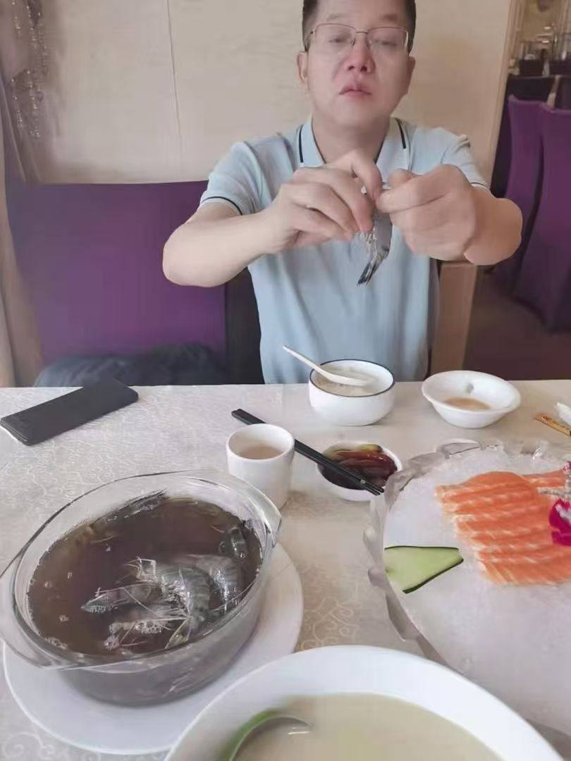 首先,虾是海鲜宴中必不可少的一“风景”,虾与香同音,也是海鲜族中香的主要来源呀!按现代人说,提气升级呀!其次鲜,新鲜;再次,是嫩,松软可口。体验食物香鲜嫩,唯一的只能是生吃了,才保鲜嫩。醉虾做法,比较简单,清水数次冲洗虾子,洗好的装进有盖的容器中,加酒及姜片、葱节、蒜蓉,请虾喝酒,如有茅台最好、或五粮液也行,若是一时半会找不到,黄酒也勉强能应付。先是闻,活蹦乱跳虾撞击容器声音,狂魔乱舞,此起彼伏。后是看,虾醉酒当歌,昏昏欲睡的样子,憨态淋漓,十分可爱。我才壮着胆子去头剥皮,虾头在垂死挣扎着,触须动个不止;尾部脚不停摆动,生命力十分旺盛。虾肉在蘸料水中稍作腌制一下,蘸料是醋与芥末配制好的。刚进口时芥末味刺鼻,有时令人掉泪,含在嘴中慢嚼细咽,美味渐出,不腥不柴,此食爽呀!大有缠绵无绝期。